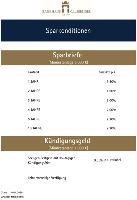 Seeliger Festgeld mit 35-tägiger Kündigungsfrist |